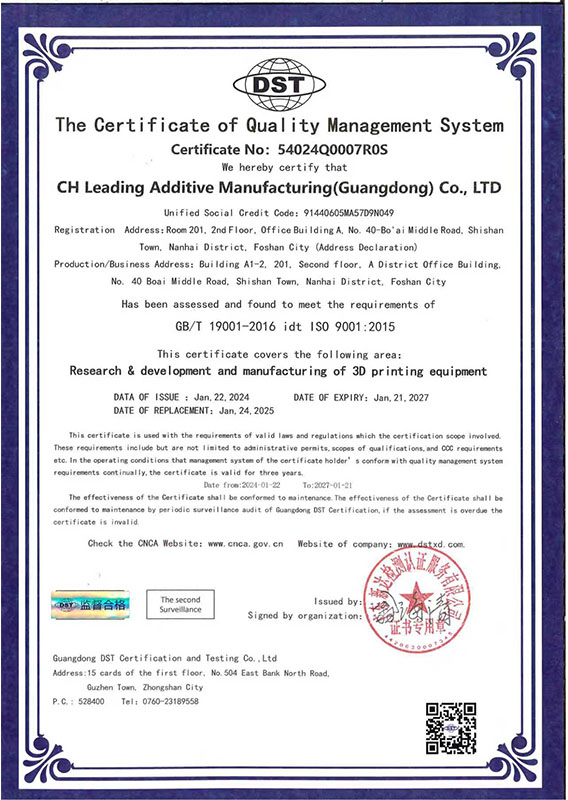 CH Leading сосредоточена на разработке технологических решений и оборудования для 3D-печати, а также на промышленном применении технологий цифрового и интеллектуального производства. Компания является конкурентоспособным поставщиком комплексных решений в данной области, известным брендом в технологии BJ, а также движущей силой и вкладчиком в индустриализацию промышленной 3D-печати.
